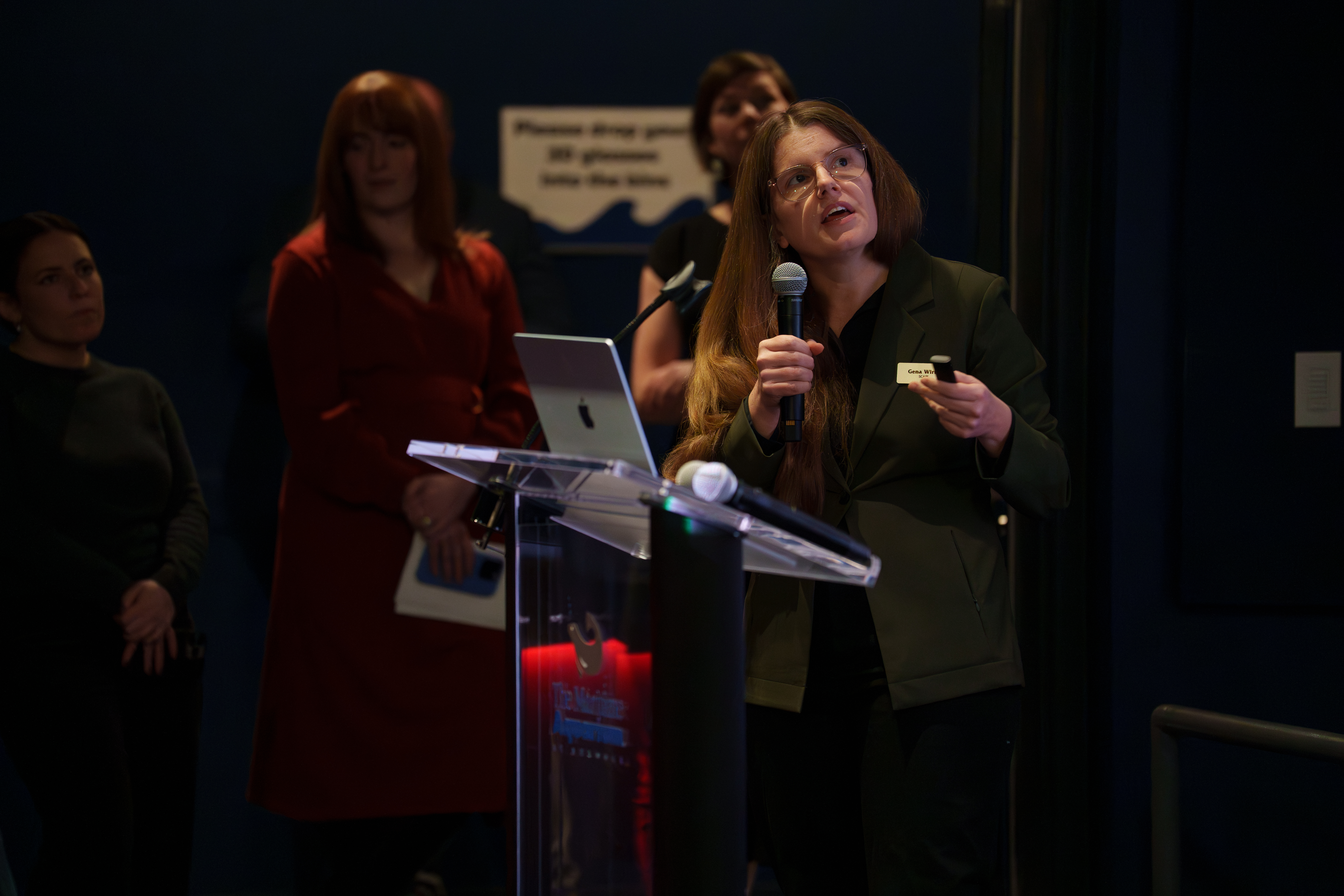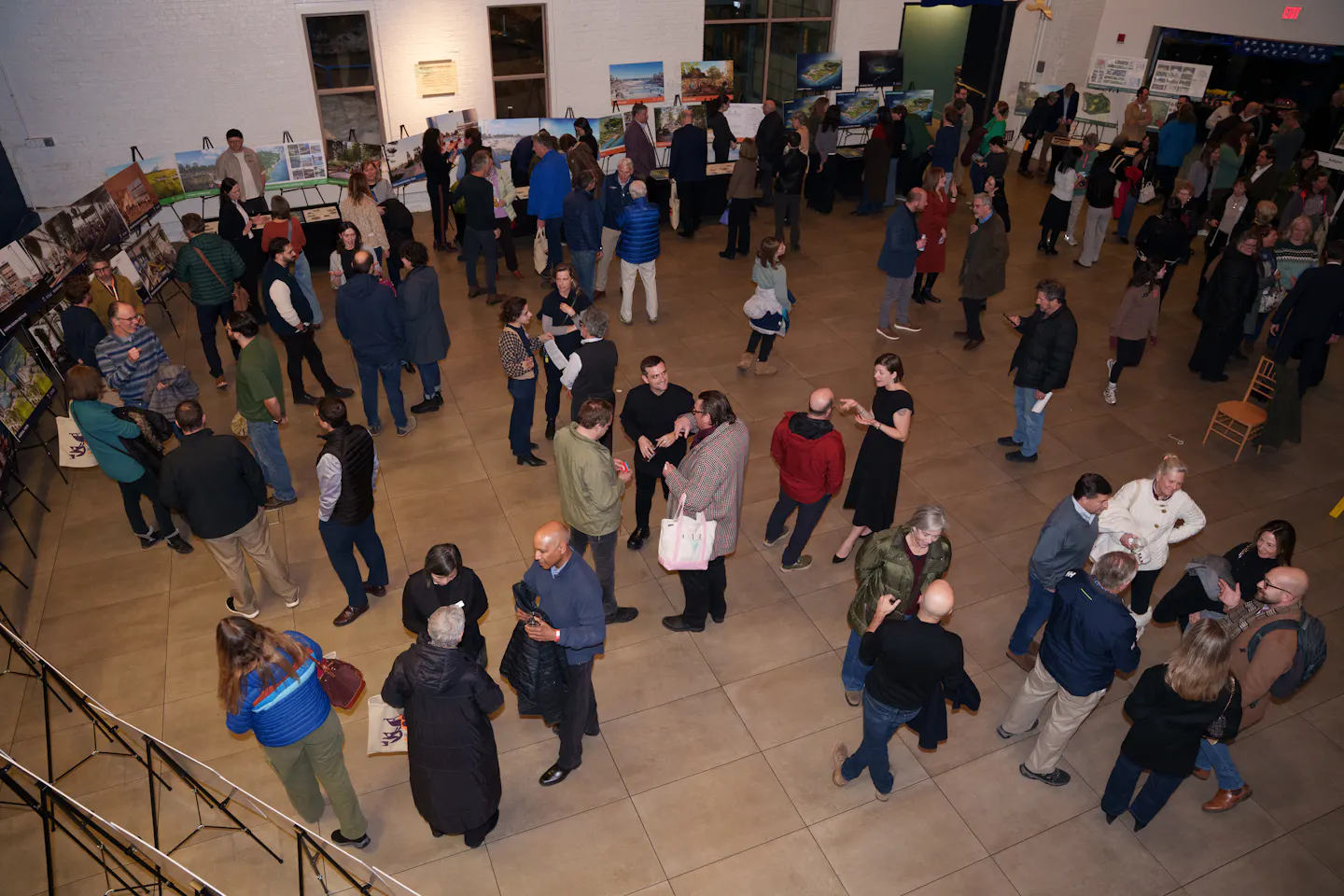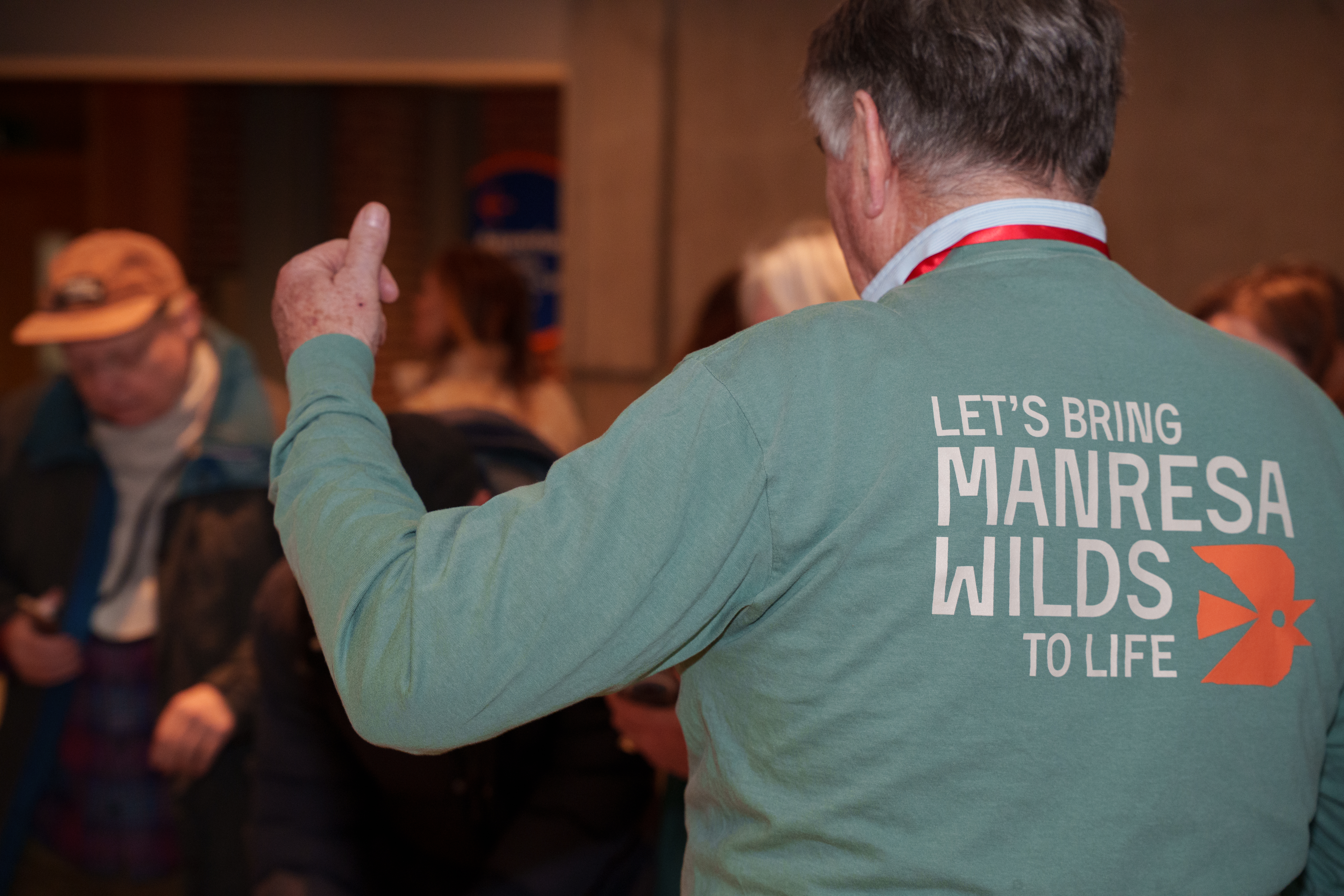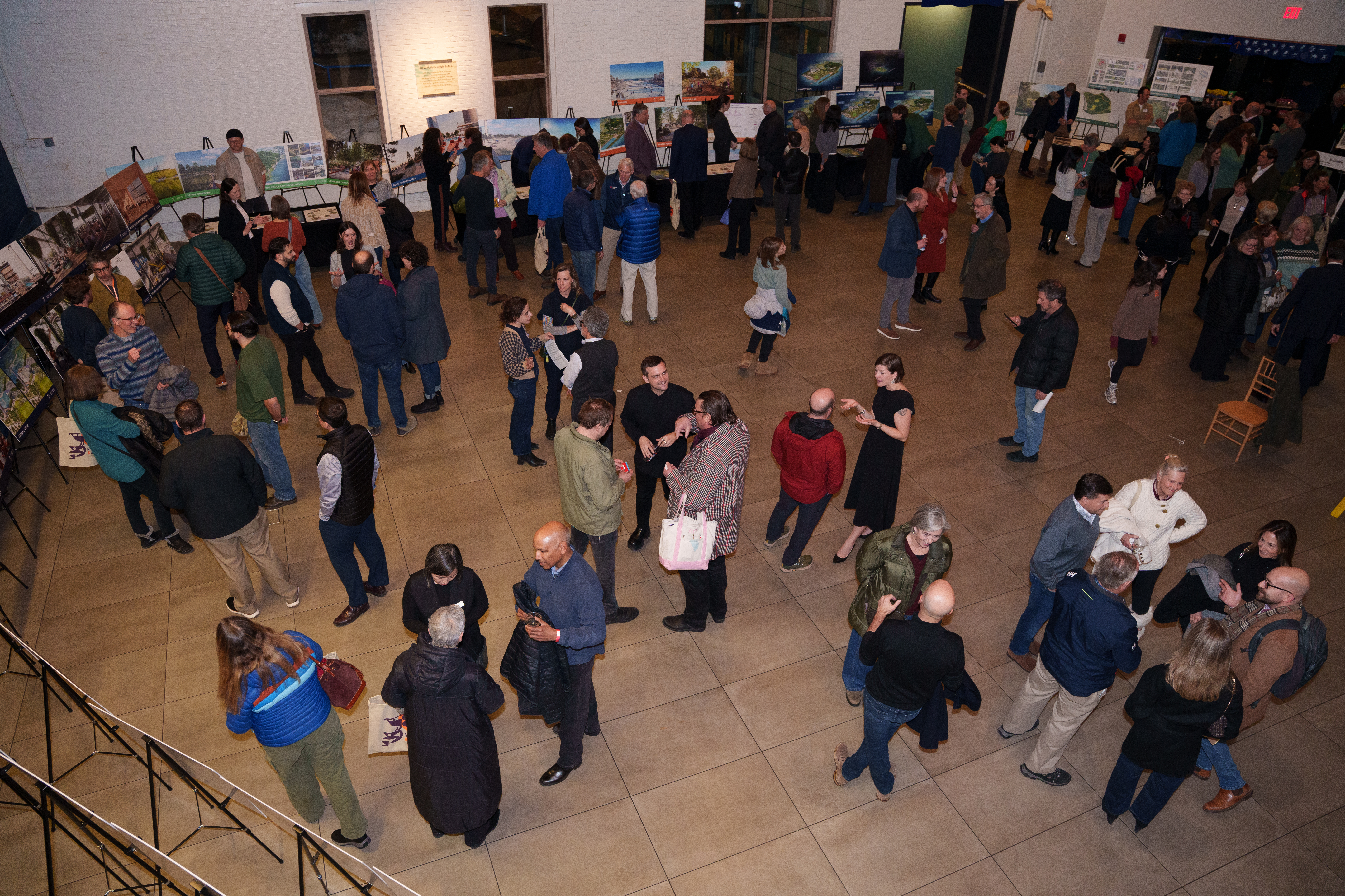 After the formal program, attendees connected with project leaders, consultants, and partners and collaborators, including Woods Hole Oceanographic Institution, Wesleyan University, Sacred Heart University, and The Maritime Aquarium at Norwalk. They shared examples of work already underway, including Wesleyan student research on site and an oral history project capturing stories from people who worked at the former power plant. The night also debuted the Manresa Wilds Ambassadors in action—welcoming guests, handing out swag, and sharing ways to get involved.